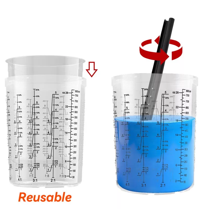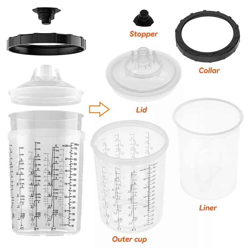 800ML Disposable Paint Cup System 1.0 သည် ဆေးဖော်စပ်ခြင်းနှင့် ပက်ဖြန်းရာတွင် လွယ်ကူအဆင်ပြေစေပြီး သုတ်ဆေးရှင်းလင်းခြင်းနှင့် သိုလှောင်မှုကို ရိုးရှင်းစေသည်။ ထုတ်ကုန်များကို သီးခြားကွန်တိန်နာများအတွင်းသို့ လွှဲပြောင်းခြင်းမပြုတော့ပါ—ရိုးရှင်းစွာအသုံးပြုပါ။တစ်ခါသုံး အတွင်းခွက်များမတူညီသော ဆေးအရောင်များကို သီးခြားစီ ရောနှော၊ ဖြန်းကာ သိမ်းဆည်းရန်၊ သုတ်ဆေးဖျန်းခြင်းကို ဖယ်ရှားပေးသည်။ AYSPAT တစ်ခါသုံးဖြန်းခွက်သုံးဖြေရှင်းချက်သည် မကြာခဏ အရောင်ပြောင်းခြင်း၊ သန့်ရှင်းရေးပြုလုပ်ချိန်နှင့် ဓာတုပစ္စည်းအသုံးပြုမှုကို လျှော့ချရန်အတွက် ဒီဇိုင်းထုတ်ထားသည်။