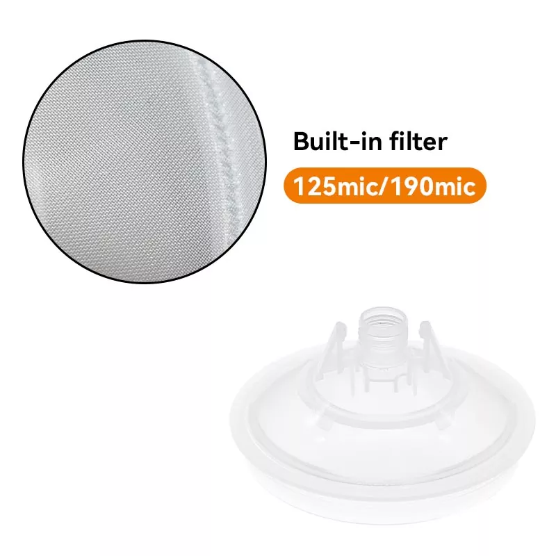 အဖုံးတွင် တပ်ဆင်ထားသော 190µm သို့မဟုတ် 125µm ultra-fine filter ပါရှိပြီး ဖြန်းစဉ်အတွင်း သုတ်လိမ်းထားသော အညစ်အကြေးများကို စစ်ထုတ်ကာ မှုတ်သေနတ်ကို ကာကွယ်ပေးကာ ဖြန်းမှုအရည်အသွေးကို မြှင့်တင်ပေးပါသည်။ ပေါင်းစပ် mesh filter အသစ်သည် filters များနှင့် သီးခြားကာဗာများကို ဝယ်ယူတပ်ဆင်ရန် လိုအပ်မှုကို ဖယ်ရှားပေးကာ လည်ပတ်မှုကို ပိုမိုအဆင်ပြေစေပြီး ပစ္စည်းကုန်ကျစရိတ်ကို လျှော့ချပေးပါသည်။