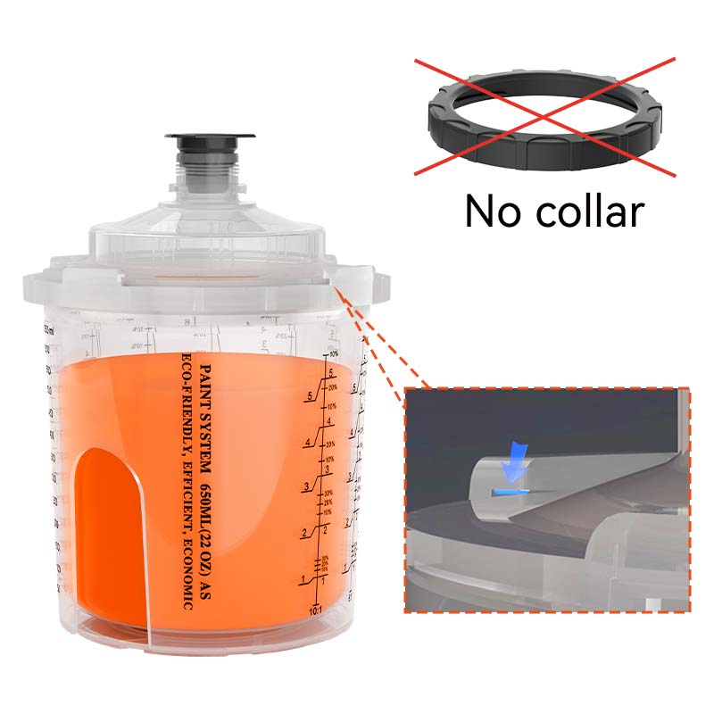 ဖလားနှင့်အဖုံးအကြားတင်းကျပ်စွာဆက်သွယ်မှုကိုဖြစ်ပေါ်စေသောကော်လာသည်တစ်ခါသုံးပျံ့နှံ့နေသောရေမှုန်ရေမွှားဖလားစနစ်များအတွက်အရေးပါသောအစိတ်အပိုင်းဖြစ်ခဲ့သည်။ အလုပ်များသောဆေးသုတ်ခြင်းအစည်းအဝေးများတွင်ပန်းချီဆရာများသည်ကော်လာကိုဆုံးရှုံးလေ့ရှိသည်။