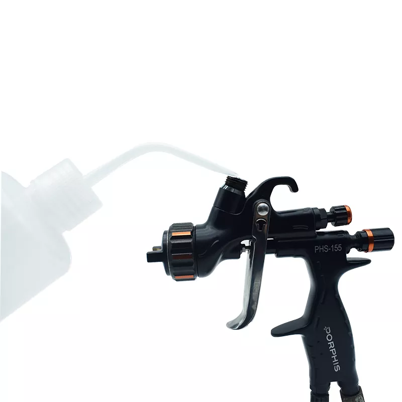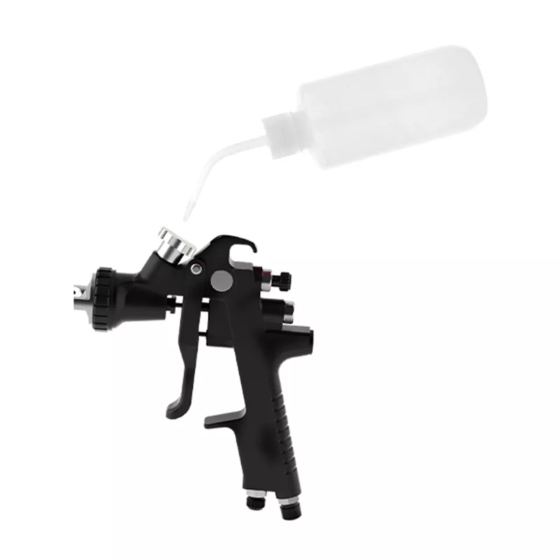 ရေမှုန်ရေမွှားသေနတ်သန့်ရှင်းရေးပုလင်း၏ထူးခြားသောကွေးစင် nozzle သည်ဆေးသုတ်ခြင်းခြောက်သွေ့မှုကြောင့်ဖြစ်ပေါ်လာသောပိတ်ဆို့မှုကိုထိရောက်စွာကာကွယ်နိုင်ပြီးသန့်ရှင်းရေးအတွက်ရေမှုန်ရေမွှားသေနတ်ကိုဖြုတ်ရန်အချိန်ကိုလျော့နည်းစေနိုင်သည်။